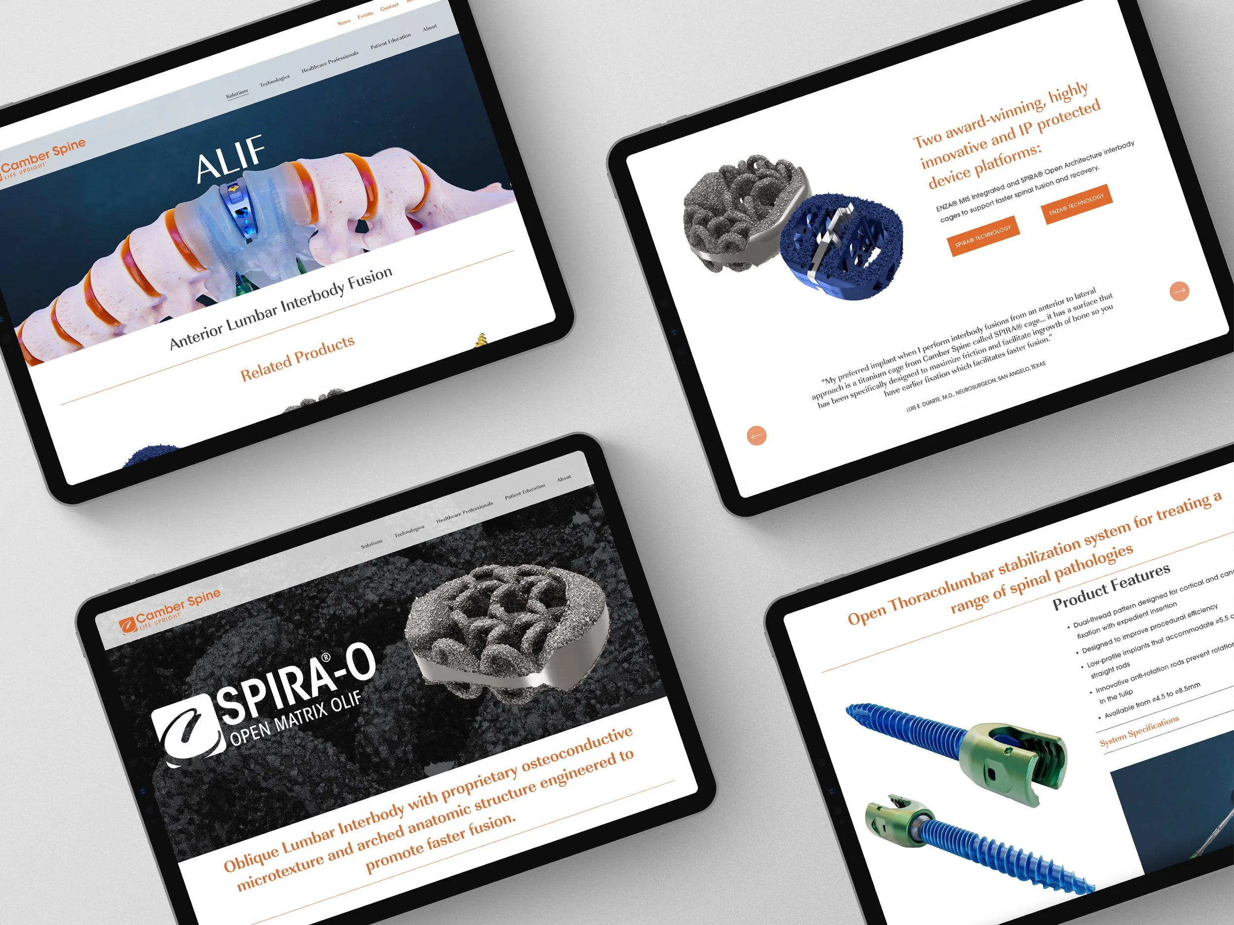 Camber Spine is a medical technology company dedicated to creating surgeon-designed solutions for spinal procedures. I played a key role in shaping and evolving the company’s visual identity, ensuring consistency across print, digital, and web platforms.